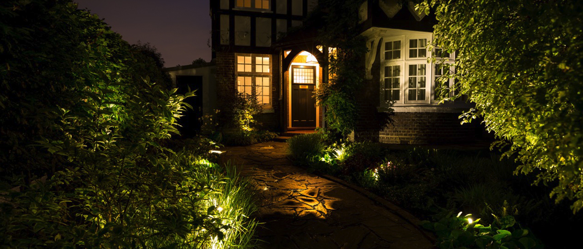 Working directly with the garden designer, we created a sophisticated lighting scheme to enhance a brand new garden design that would extend its use beyond sunset. It had been zoned for play, eating and planting. The lighting scheme fitted in with this layout – using several circuits so that the use remained flexible, with different effects achievable at the flick of a switch. Sympathetic security lighting was added, incorporating standalone movement sensors, and switching overrides allowed for more effective illumination immediately around the house when required. The stylish front garden lighting works on a timer as well as movement sensors – so the home looks welcoming, is practical for visitors after dark, and has an added security deterrent.